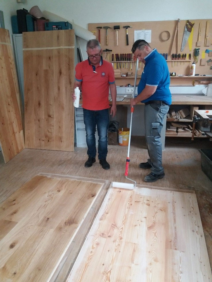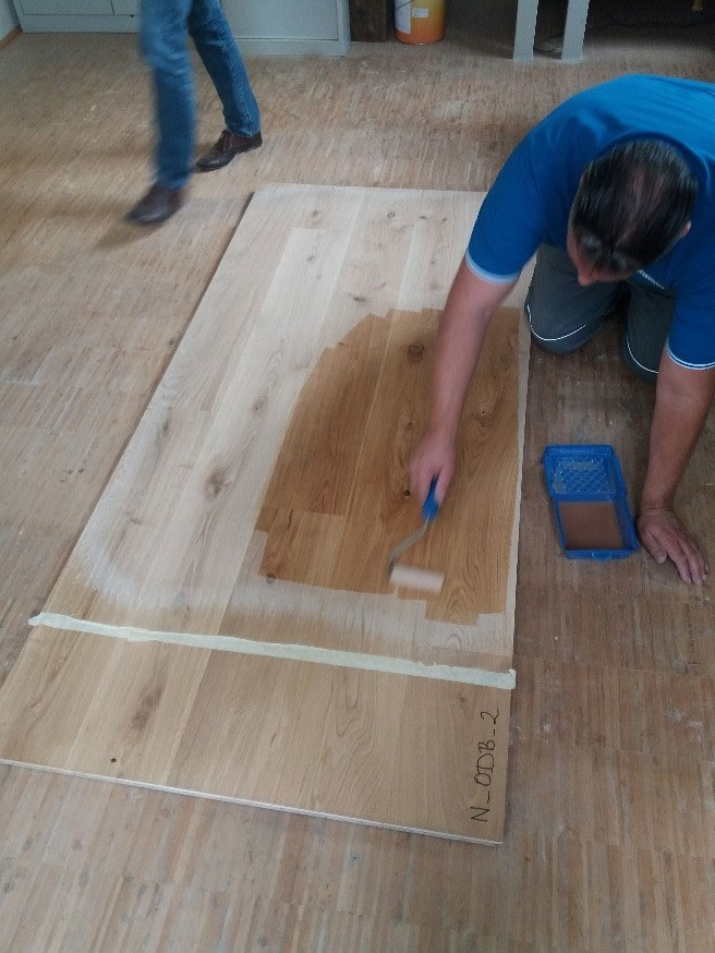 Während des Projektes wurden verschiedene Reinigungsmethoden in Bezug auf Praxistauglichkeit auf strukturierten Holzoberflächen untersucht. Die Methoden wurden an Parkettdielen mit stark gebürsteter Eichen- und mittelstark gebürsteter Lärchendecklage getestet. Im Test wurden Oberflächen mit Ölbehandlung, wasserverdünnbarem Lack, UV-härtendem Öl und UV-Lack ausgewählt.