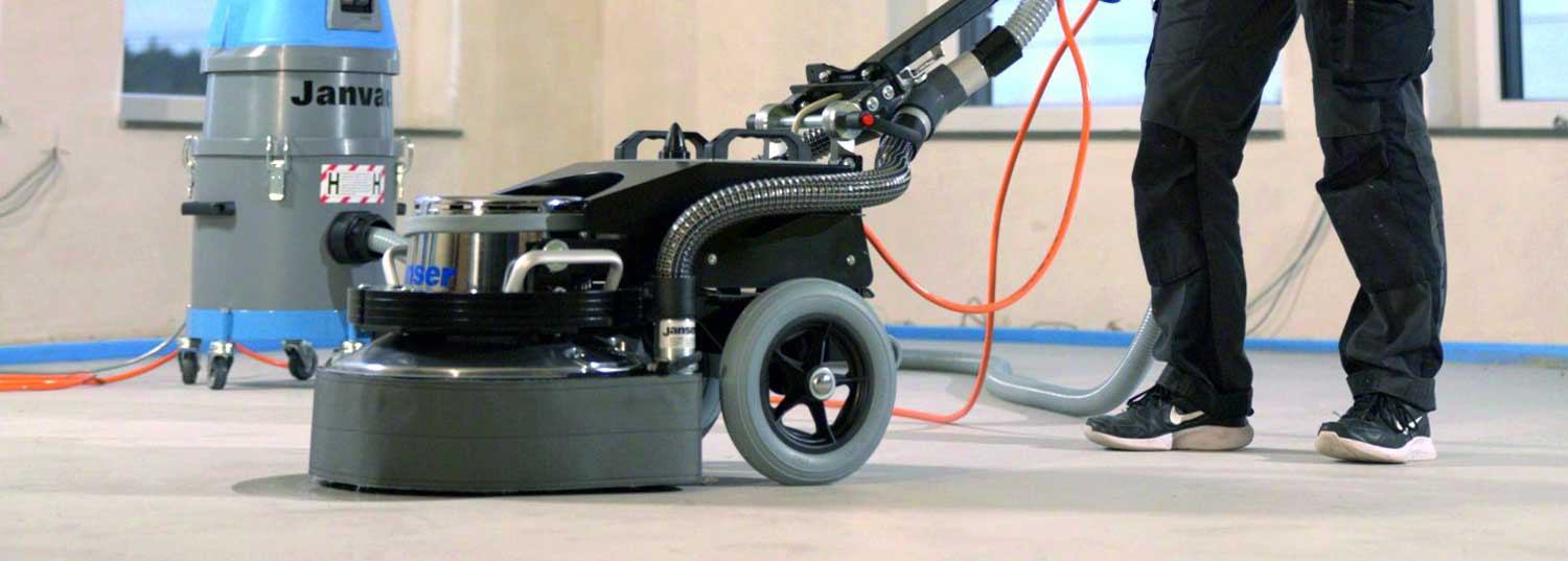 - Im nächsten Schritt wird der Bodenbelag abgeschliffen zum Beispiel mit dem Janser Speedtronic. Eventuell ist ein zweiter Schleifvorgang nötig.